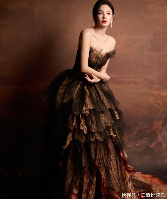 修身设计突显了她的肩颈线和精致锁骨,腰部束腰勾勒出优美曲线,裙摆呈扇形展开,将海洋元素与星河浩瀚交织,给人大气磅礴的视觉冲击。这种外在形象与内在自信的结合,使她在39岁时依然状态出众。高颧骨撑起冻龄脸庞,豹系眼神锐利而充满力量,行走间力量与柔美并存。如今的张雨绮身穿深棕色礼服站在舞台上,裙摆一层层叠加如花瓣,抹胸上覆盖着轻盈网纱。灯光下的她静如绽放的永生花,又似一幅流动的油画。“我还在上升期,我认为所谓上升期不局限于新人,也不取决于年龄。”她曾在采访中这样定义自己的状态。